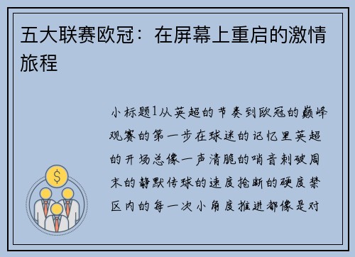 part1总结:五大联赛与欧冠的魅力,远不止于比赛的胜负。它们是一整套关于城市、球员、战术、情感与社群的叙事体系。通过优质的观赛平台,你可以在家中得到专业级的画质和解说,享受多镜头、多语言的灵活切换,以及实时的数据分析与球迷社区的互动。这些元素共同构成一场场既热血又理性的观赛旅程,让你在平凡的夜晚也能体验到非凡的足球现场感。